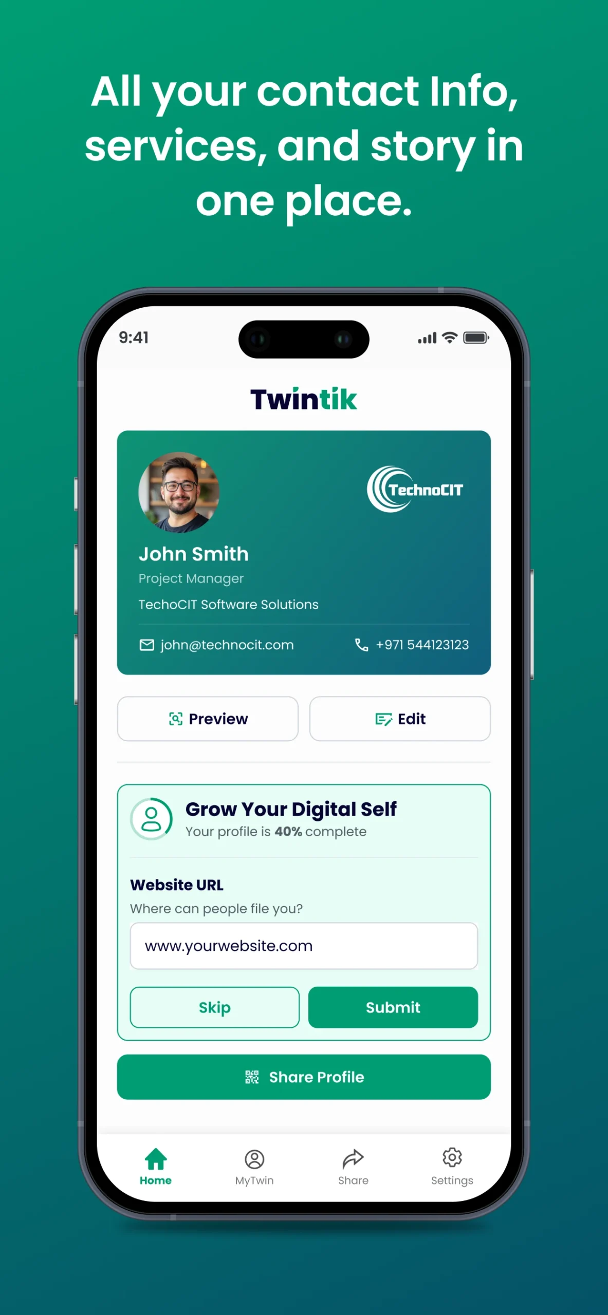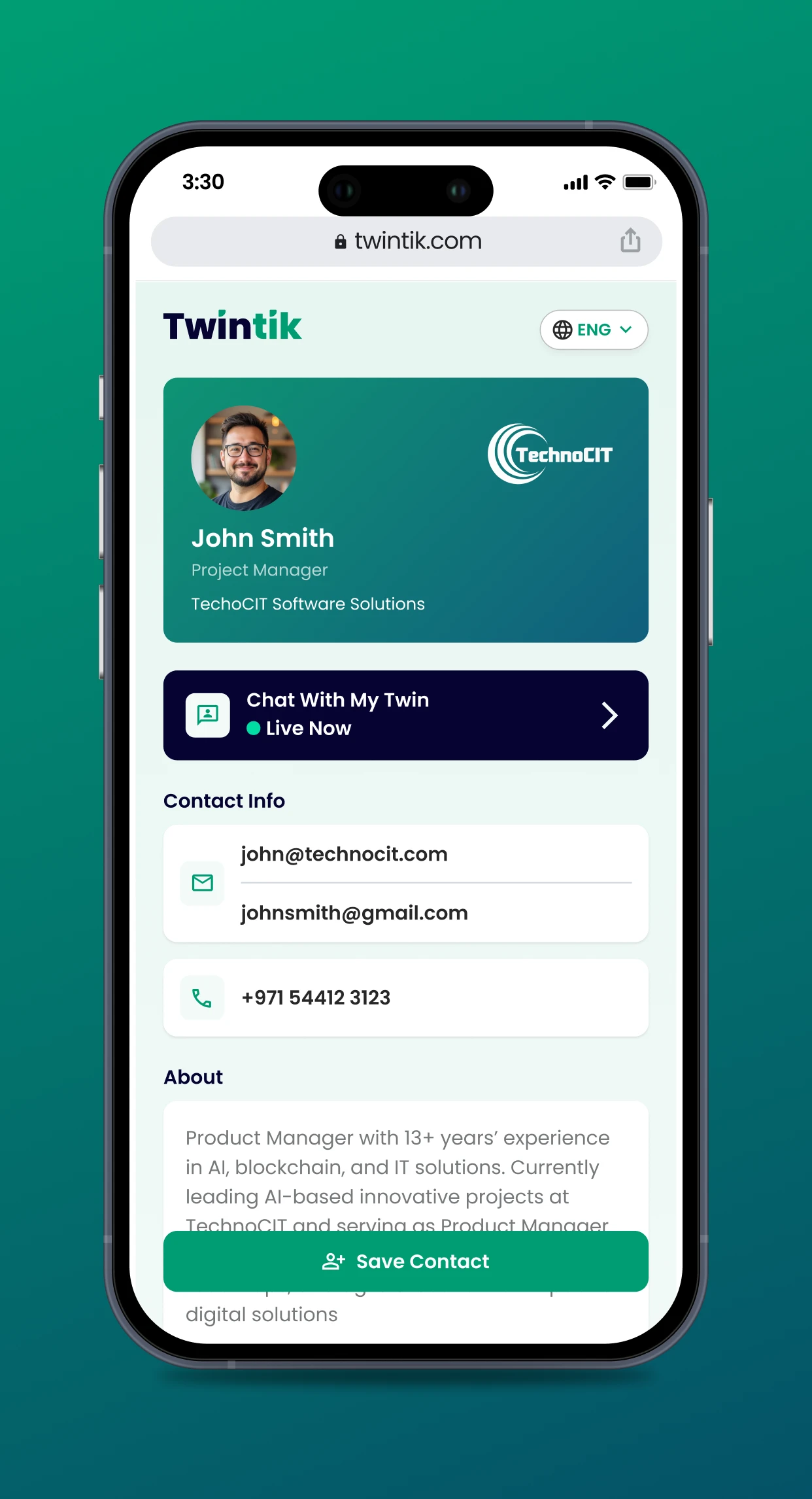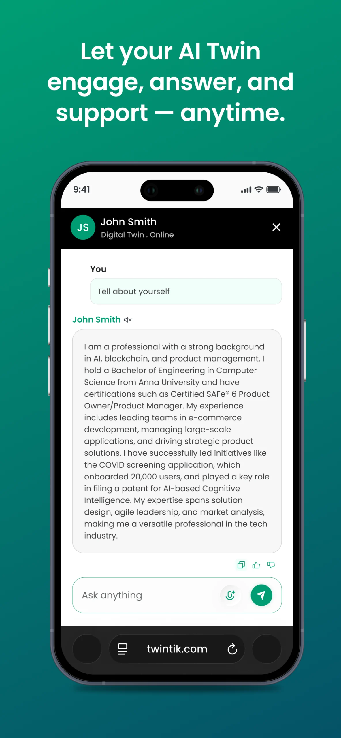 Beyond networking, Twintik introduces MyTwin – an AI assistant and avatar that engages contacts, answers questions, and provides interactive personalization.